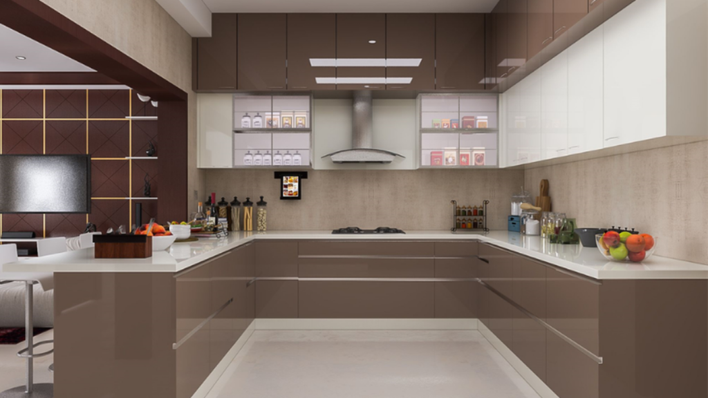 Tủ bếp chữ U bao quanh người sử dụng trên ba mặt, thường thấy trong: