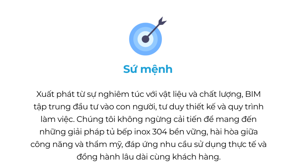Mỗi thiết kế của BIM là sự cân bằng giữa công năng, thẩm mỹ và độ bền, được nghiên cứu kỹ lưỡng để hài hòa với tổng thể không gian bếp. Sự tinh giản trong đường nét, tính logic trong bố trí và cảm giác sử dụng thoải mái là những giá trị chúng tôi luôn theo đuổi.