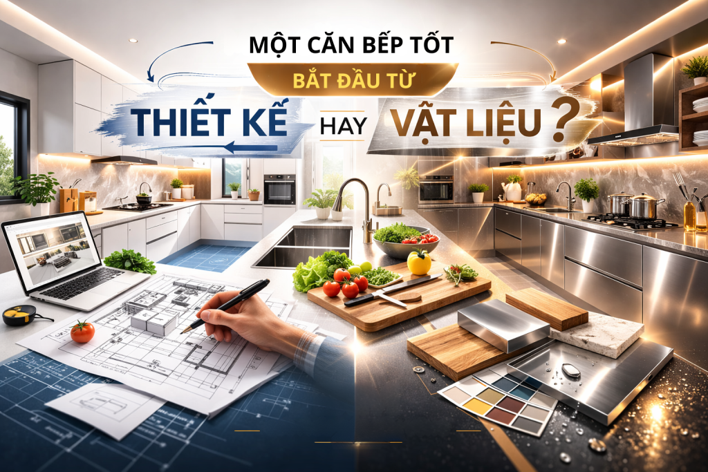 Thực tế, đây không phải là lựa chọn “một trong hai”, mà là sự kết hợp đúng giữa cả hai yếu tố để tạo nên một không gian bếp hoàn chỉnh, bền vững và tiện nghi.